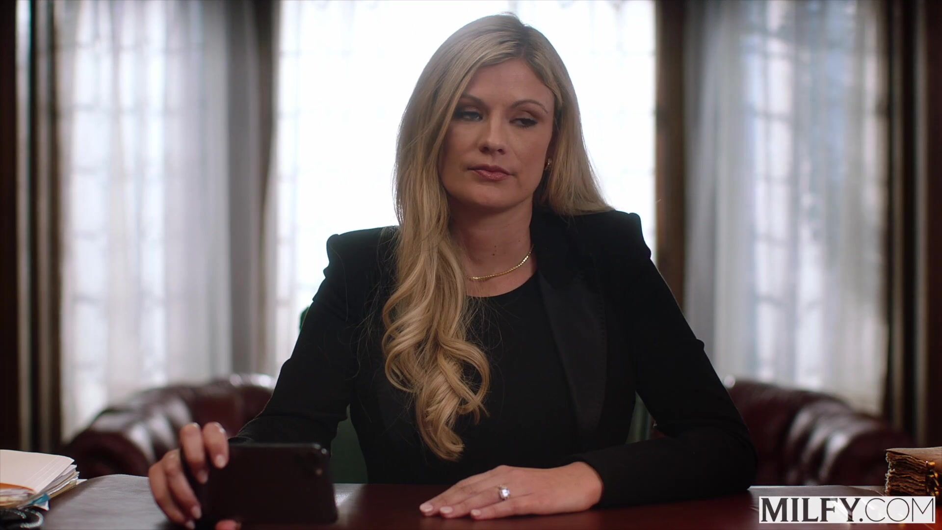 Sexy principal Ellie turns a disciplinary meeting into a hardcore fuckfest on her desk